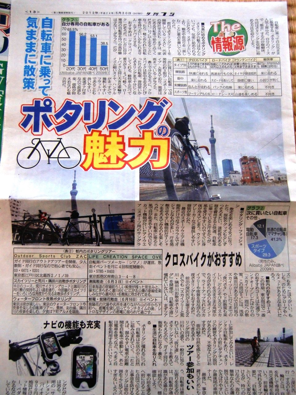 昨日発売の、夕刊フジにZACポタリングツアーが掲載されました。