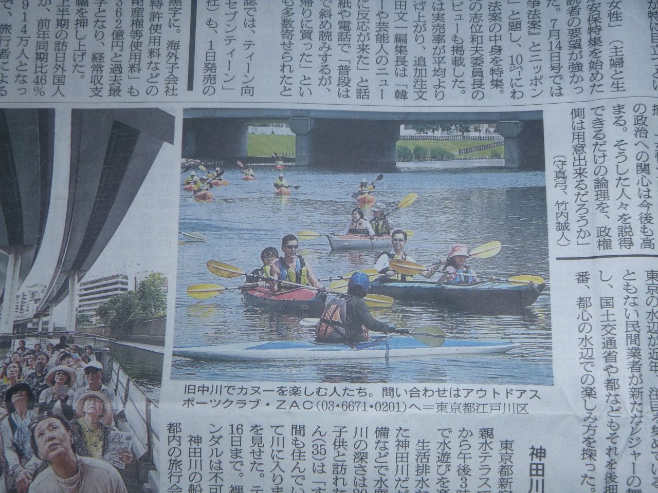 先日、朝日新聞夕刊に東京スカイツリーカヤックツアーを掲載して